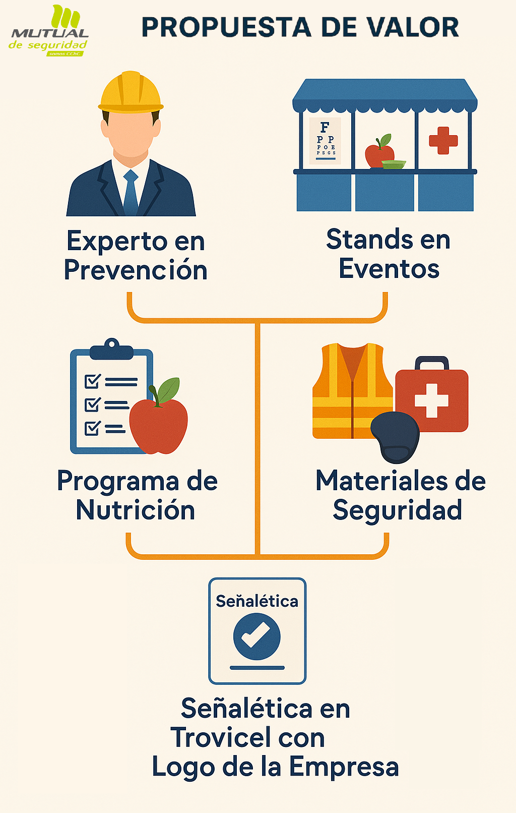 Actividades como pausas activas, stands de salud, nutrición y oftalmología, programas nutricionales, masajes en silla, junto con kits ergonómicos, señalética y botiquines personalizados con el logo de tu empresa.