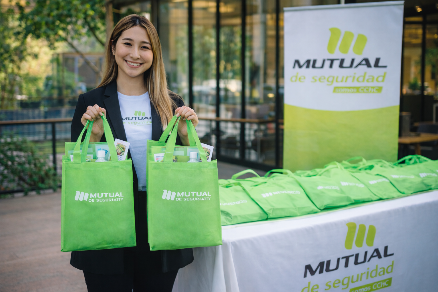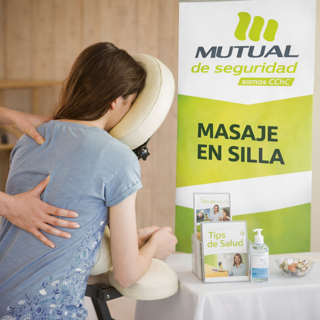 Actividad dirigida a los trabajadores cuando una empresa se incorpora a Mutual de Seguridad. Se instala un stand donde se entregan kits de bienvenida con merchandising, junto con orientación sobre la mutualidad, agencias cercanas y beneficios disponibles. Durante la jornada se realizan actividades lúdicas, pausas activas, trivias y obsequios, promoviendo la participación de los trabajadores y visibilizando el cambio de organismo administrador.